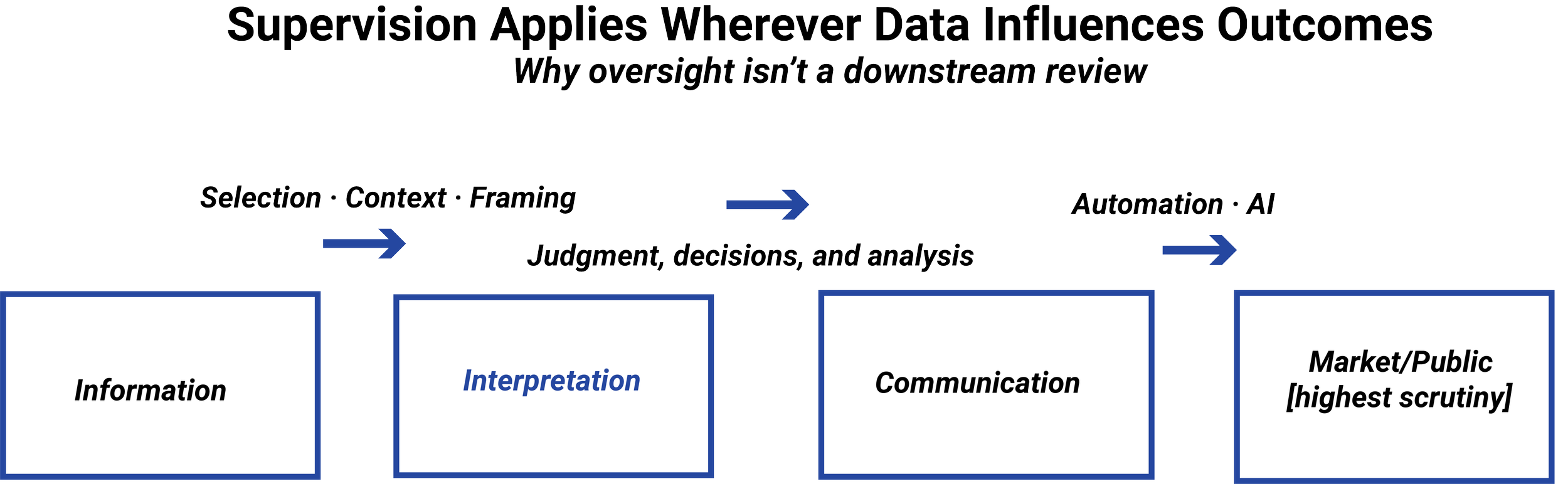 Provides a policy-level articulation of supervision as a mechanism for assigning responsibility and controlling downstream risk.